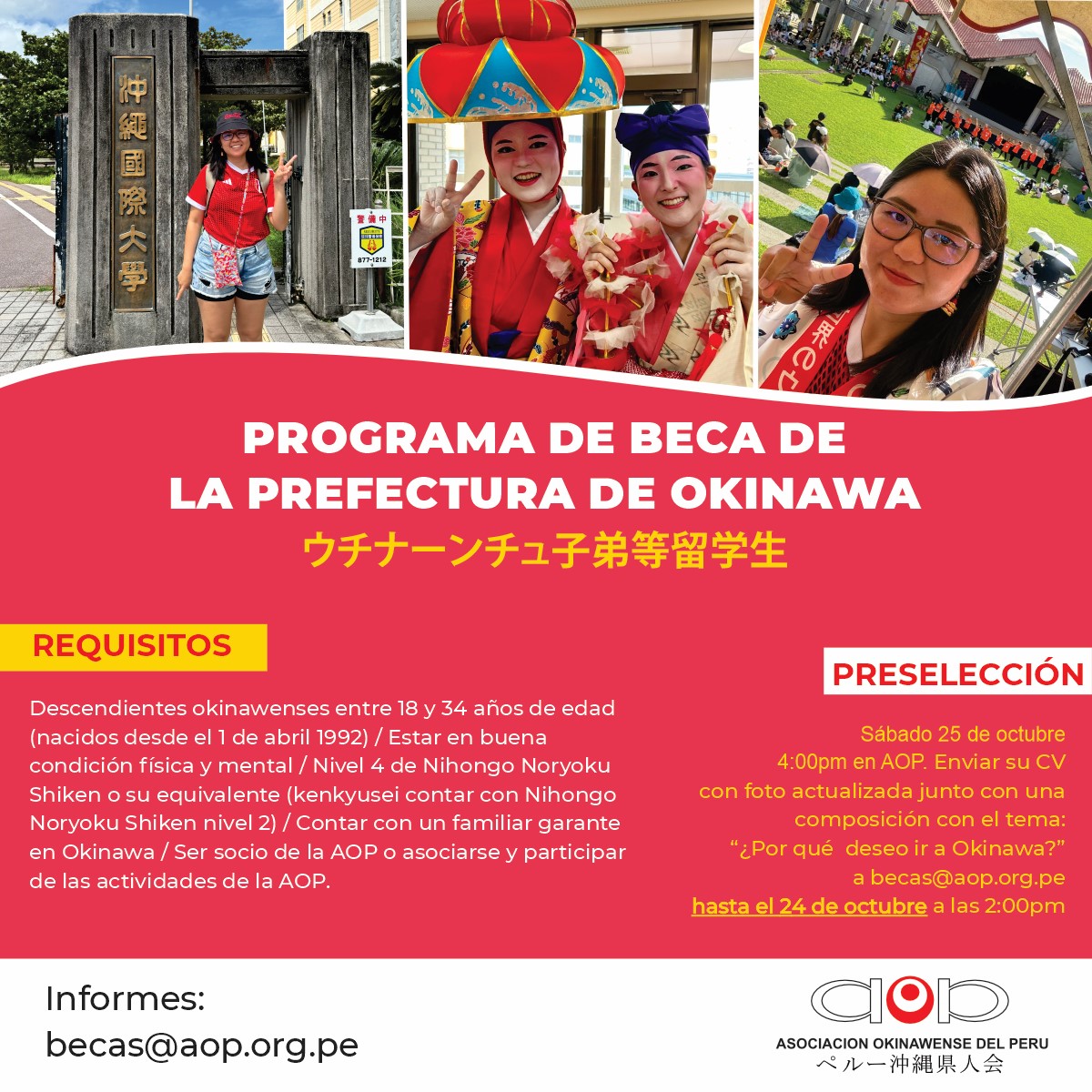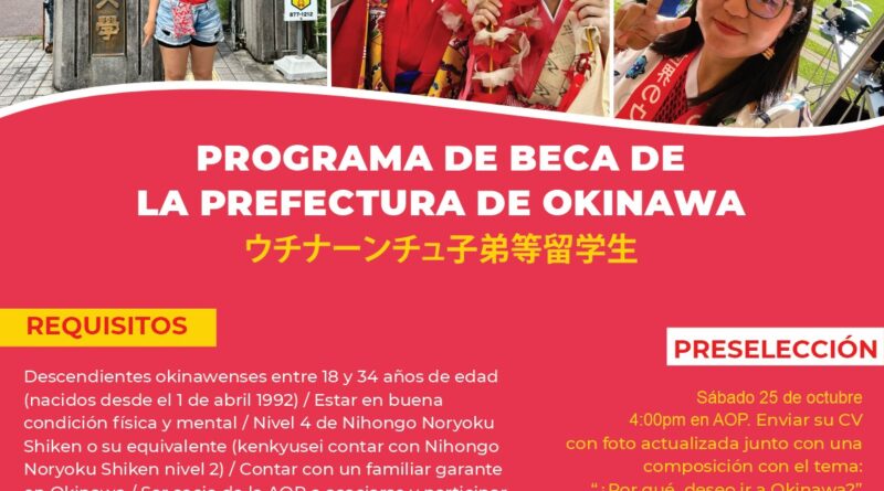 La preselecciรณn de las becas Kenpi perรญodo 2026 de la Prefectura de Okinawa se realizarรก este sรกbado 25 de octubre a las 4:00 p.m. en la AOP.