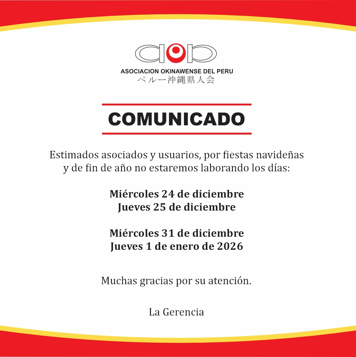Estimados asociados y usuarios, les compartimos nuestros horarios por fiestas navideñas y de fin de año
