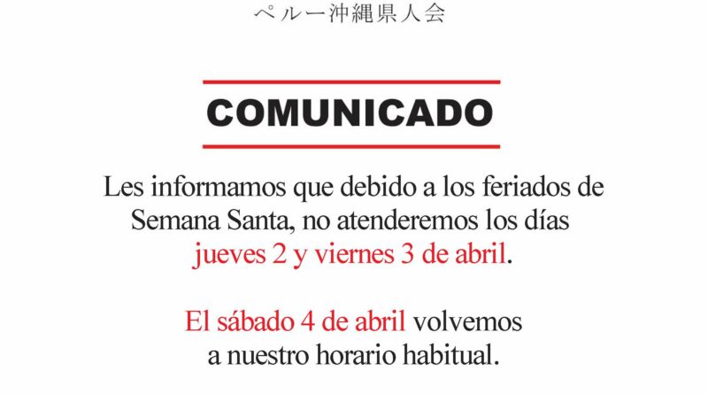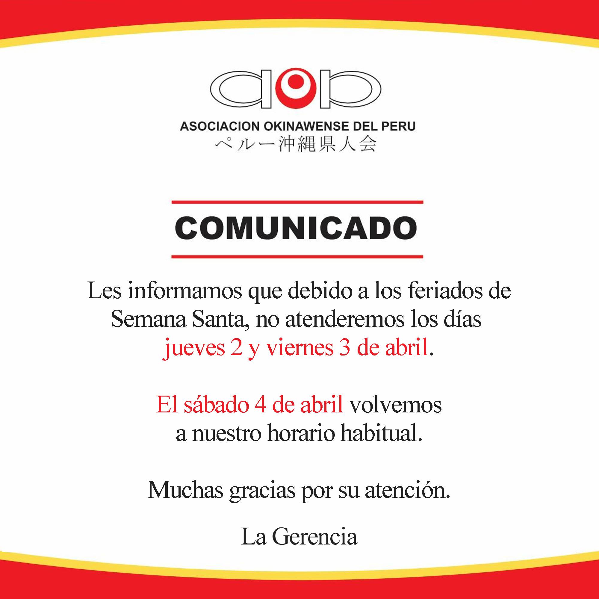 Les informamos que no estaremos laborando los días jueves 2 y viernes 3 de abril debido a los feriados de Semana Santa ![]()